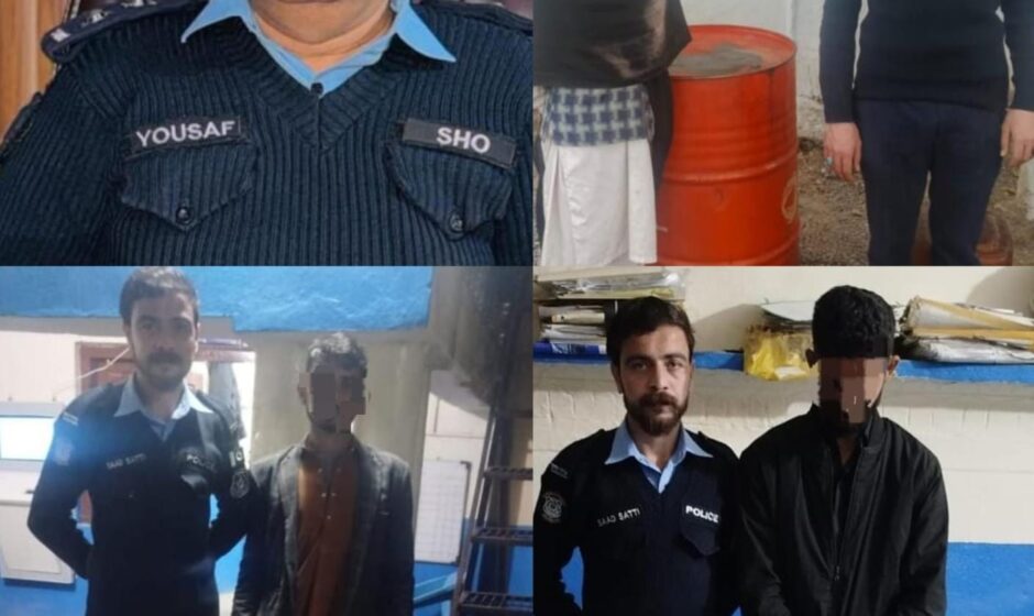 کارروائیوں کے دوران غیر قانونی طور پر پٹرول اور گیس فروخت کرنے میں ملوث دو ملزمان کو گرفتار کر لیا گیا، جن کے قبضے سے غیر قانونی گیس سلنڈرز اور پٹرول برآمد کیا گیا۔ گرفتار ملزمان کی شناخت حمزہ ولد دالدار اور عدنان حبیب ولد حبیب الرحمن کے نام سے ہوئی۔