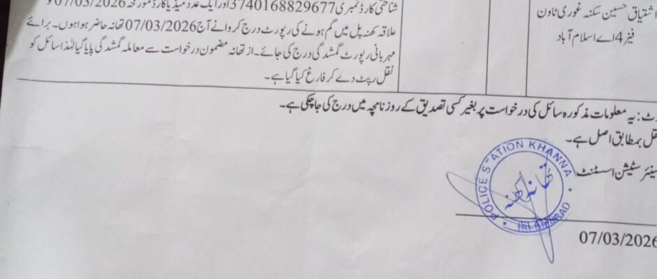 اسلام آباد کے تھانہ کھنہ کے علاقے مری روڈ نزد اوڑیاں گاؤں میں ایک تشویشناک واقعہ پیش آیا جہاں نامعلوم ملزمان نے گن پوائنٹ پر ایک پولیس اہلکار کو لوٹ لیا اور سرکاری اسلحہ سمیت موٹر سائیکل لے کر فرار ہوگئے۔ پولیس ذرائع کے مطابق واقعہ آج شام تقریباً 4 بجے پیش آیا جب دو […]
